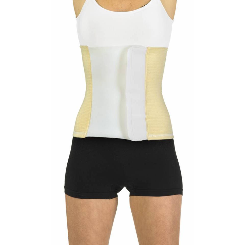 A latex-free abdominal girdle, with adjustable Velcro closure, which supports the abdominal muscles, for example after an operation.
