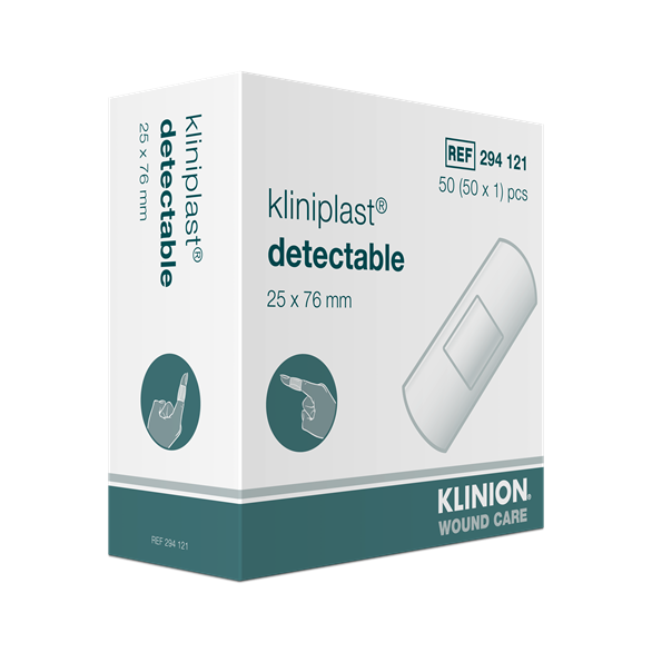Kliniplast Detectable is geschikt voor snelle behandeling van kleine, alledaagse verwondingen met weinig wondvocht. Omdat de pleister goed gedetecteerd kan worden, is deze met name geschikt in keukens bij voedselvoorbereiding en in de voedselverwerkende industrie.